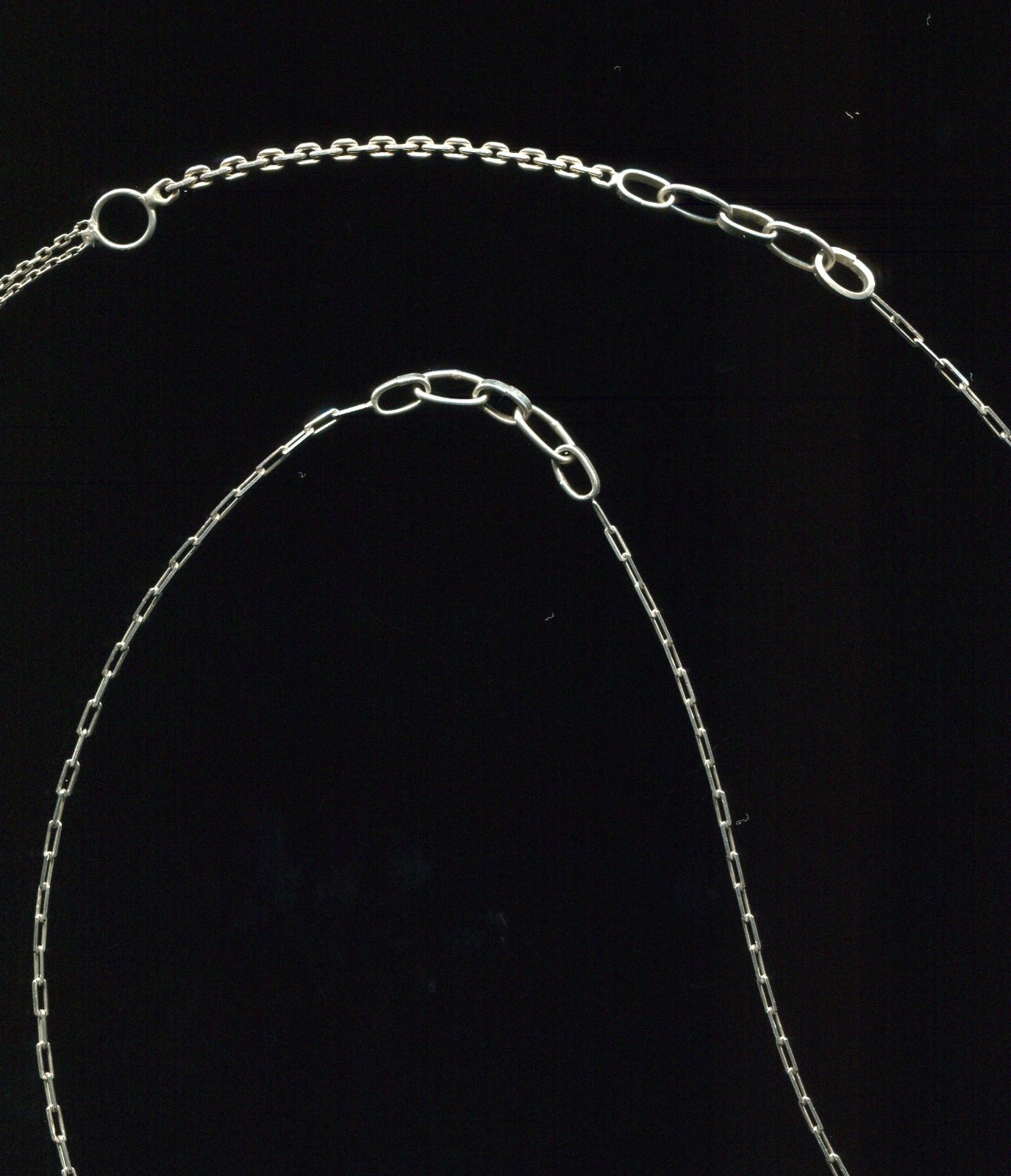 Two distinct types of chains seamlessly integrated into one functional design. Each link is precisely soldered by hand, featuring a polished finish that ensures strength.The soldering process is executed with traditional silversmithing techniques, ensuring clean joints and long-term durability.